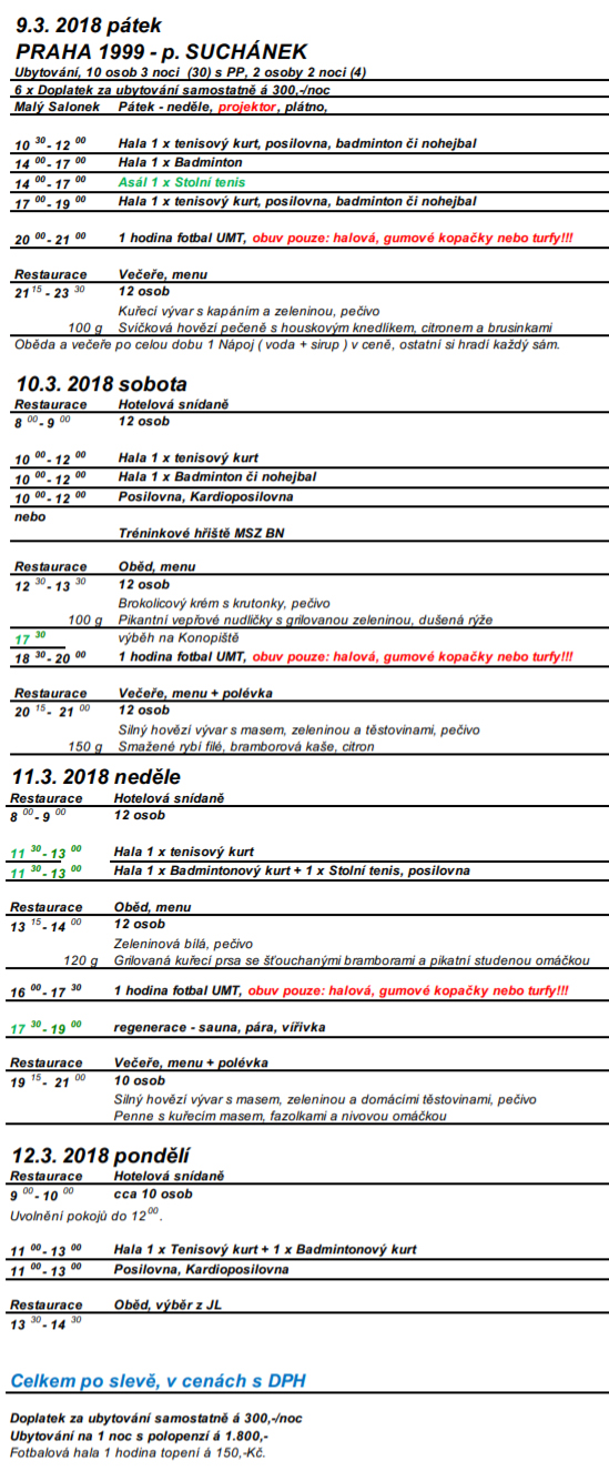 Soustředění ve Sportcentru v Benešově, které proběhne od pátku 9. března do pondělí 12. března už má svůj detailní plán, stáhnout si jej můžete zde. Případně v příloze pod tímto článkem. Fotogalerii ze soustředění si můžete prohlédnout zde.